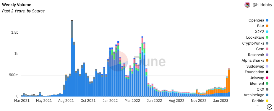 本記事は、これまでNFT市場で大きなシェアを獲得していたNFTマーケットプレイス「OpenSea」と、昨年の10月にローンチされ急激に成長しているNFTマーケットプレイス「Blur」の間で起こっている覇権争いとそれを取り巻くロイヤリティ問題について触れていきます。