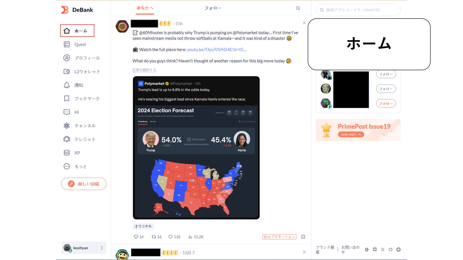 Debankのサービス開始当初は、ウォレットを接続するだけで複数のチェーン上の資産を確認できる、ポートフォリオ管理ツールでした。しかし、現在はX(旧Twitter)ライクなソーシャル機能や、マーケテイングサービス、ランキング機能などのマルチなサービスを展開しています。